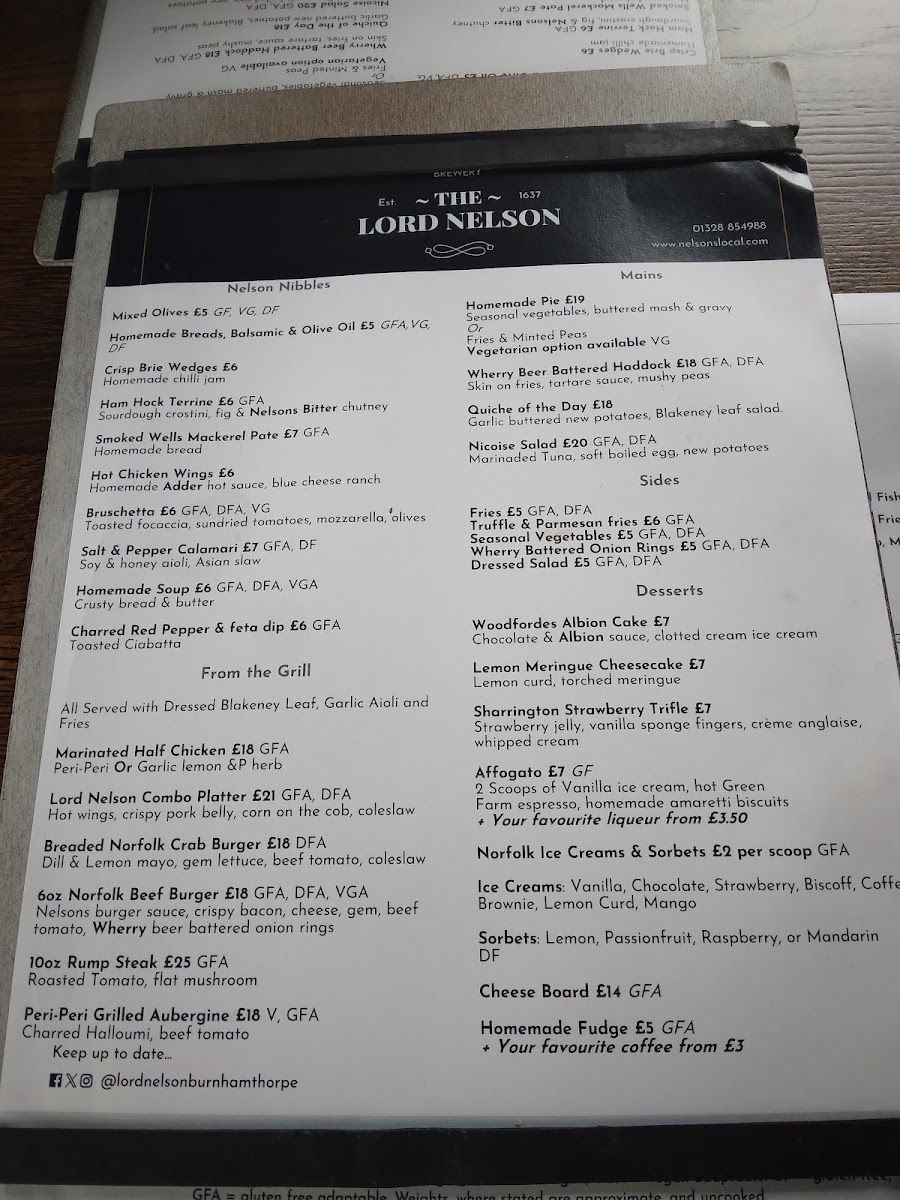 The menu at The Lord Nelson, Burnham Thorpe offers a well-rounded selection of comforting and classic dishes, thoughtfully prepared for a relaxed dining experience. Whether you're stopping by for a casual lunch or settling in for a leisurely evening meal, the menu provides a variety of options that suit both small bites and more substantial plates.